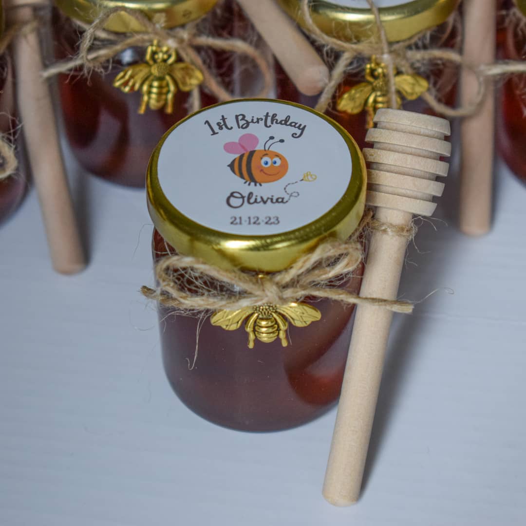 Birthday Party favors personalized honey jars, specifically tailored to add a touch of sweetness to your birthday celebration.